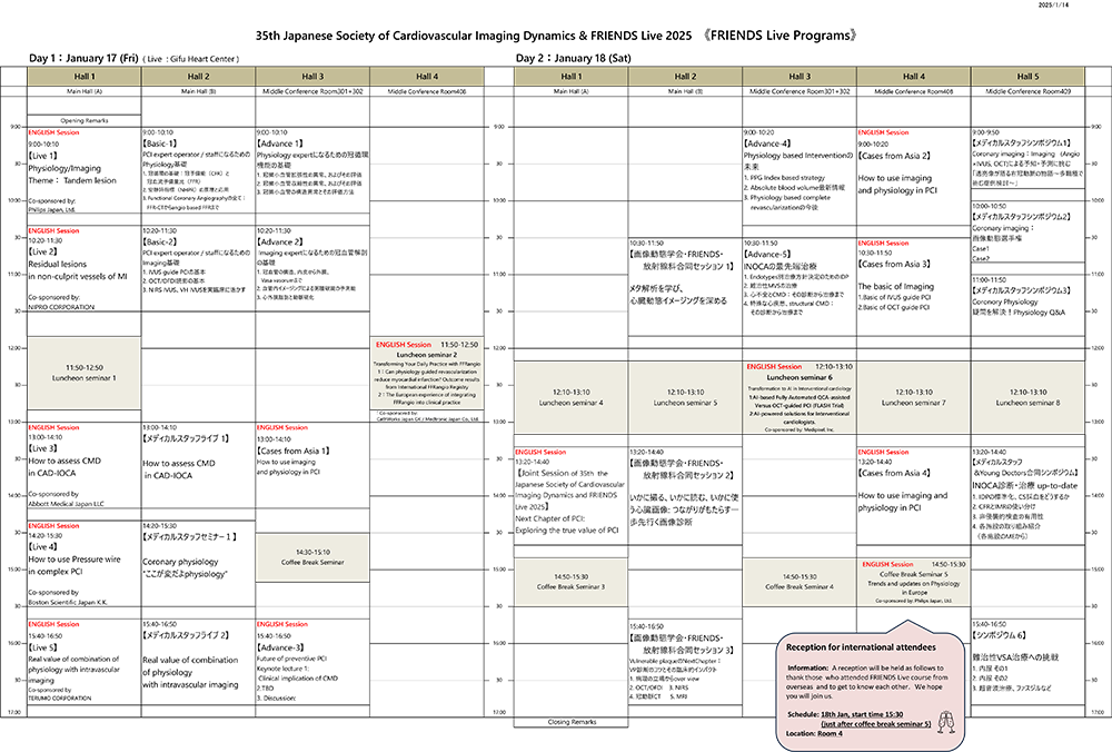 ※こちらの日程表はFRIENDS Liveのプログラムのみを掲載しています。全体プログラムはhttps://www.c-linkage.co.jp/jscvid35-fl/にてご確認ください。